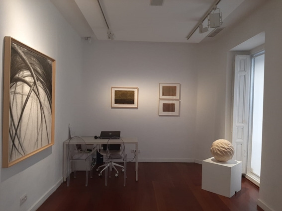 etud contemplativa y poco complaciente, para trascender la superficie. También los trabajos del leonés Ramón Isidoro (1964) tantean esas pulsiones austeras sobre la corteza de la pintura y hacen del silencio su obsesión vital. Sus series en pequeño formato sobre papel continúan explorando las melodías semiocultas de la materia, en tenues capas que reclaman la paz interior, la pasión de luz y el deseo oculto entre sinfonías y escenografías melancólicas. En esta sala, la levedad orgánica de Mar Solís (1967) proyecta otro hermoso guiño a ese espíritu de atracción/dispersión que siempre habita sus sugerentes dibujos sobre papel, experimentando con la línea y sus múltiples fluctuaciones a partir de movimientos polimórficos donde cada trazo se convierte en un núcleo que vibra sobre mismo y habita la composición deslizando una magia espontánea que no es sino jugo exprimido en la intimidad metodológica de la artista madrileña. Como ocurre con la intransferible escultura del japonés Tadanori Yamaguchi (1970), cuya primera exposición individual en Puxagallery abrirá nuestra programación 2020-2021, en el mes de septiembre. Sirva su obra en esta exposición colectiva como anticipo para advertir cómo Yamaguchi explora las formas orgánicas de la materia asumiendo como eje filosofal el hatsuru, el diálogo con la materia, entre lo terrenal y lo espiritual.