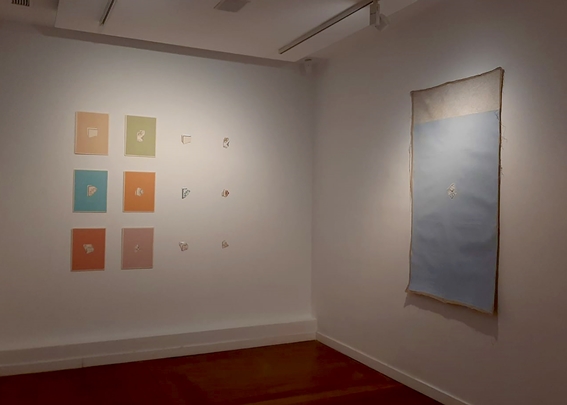En la sala 2 encontramos los trabajos de la valenciana Silvia Lerín (1975), que también debuta en Puxagallery tras una exitosa trayectoria en el Reino Unido, donde reside y expone desde hace años. Sus instalaciones alternan las dos y tres dimensiones buscando la filiación entre emociones y energías; caminos visuales donde los pigmentos se funden con la piel de cada textura, de apariencia metálica, cuyos leves matices reclaman una qui