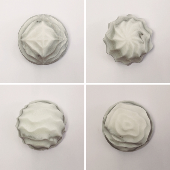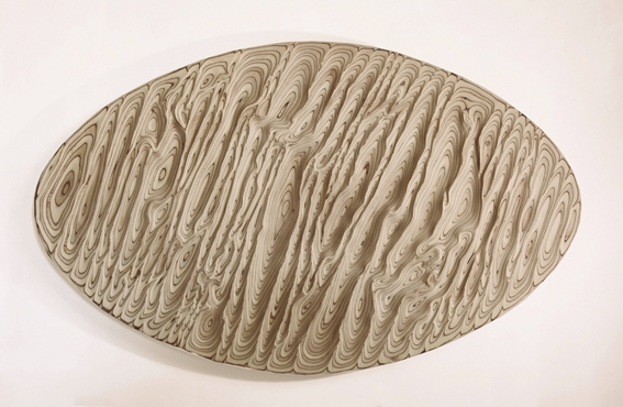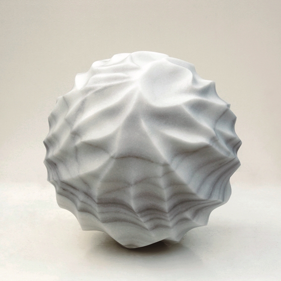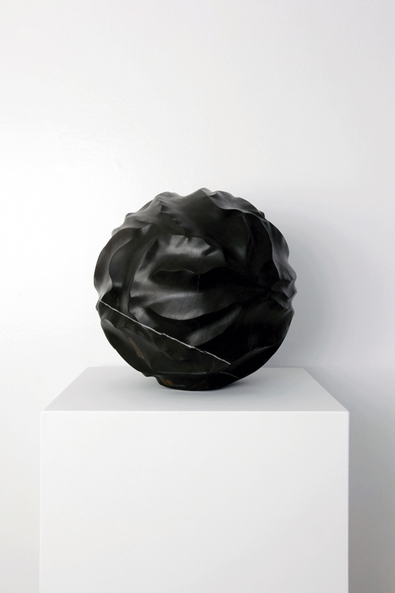Tadanori Yamaguchi’s gaze is unique and non-transferable, always committed to identity of his roots and to the environment, trying to capture delicate tributes to his homeland where the brief is as overwhelming as immutable. In a difficult historical moment alienated by health and economic crisis, our society is full of anxieties but this honest Japanese artist gives us hope by bringing up the idea of water as the genesis of life, the seed from which everything is born; water as the reflection of things that connect us to earth. Traces, light, erosion, ice, spiral of currents and other immemorial mysteries serve as a pretext here to develop volumes that harmonize superficial complexity and inner serenity. Every solid block, either in stone, marble, wood or aluminum, is worked conscientiously during long workshop sessions, as it also happens with his subtle paintings and papers. The titles of the works (Kaminari, Shonyuseki, Hyoheki, Shonshoku, Uzumaki …) define a formal language whose physical methodology is the direct result of a process assumed as a reflective and spiritual journey. There is no trace of industrial design or decorative effects, only the purity linked to the hatsuru, a dialogue with matter, a true leitmotif of this tenacious dream builder.